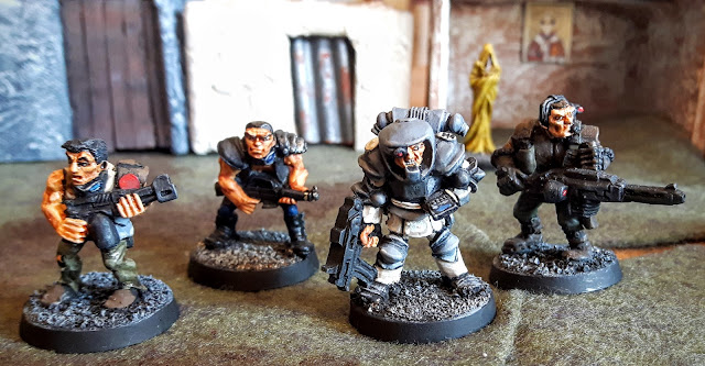 These are part of a series of vignettes I've been posting on the Facebook Oldhammer community as well as on other social media. Basically, now that I've got some free space on my workbench, I've been using it to shoot tiny little miniature scenes. So far I've focused on Oldhammer stuff, but I will probably eventually expand it to showcase the stuff I've painted for Strange Aeons, Frostgrave and (in progress) Wasteman. I will have a longer post to make about this series at a later time.